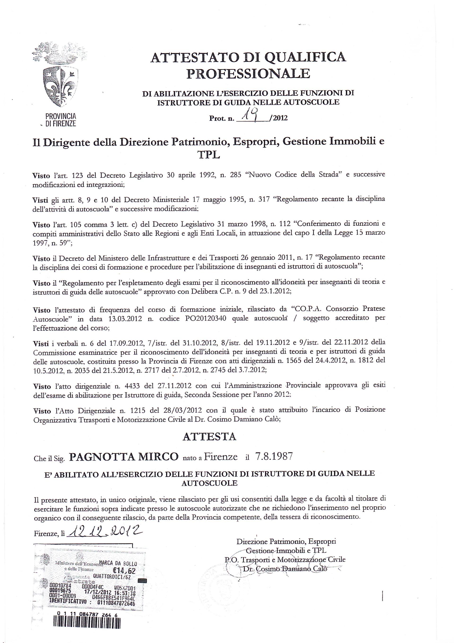 CERTIFICATO ABILITAZIONE PROFESSIONALE